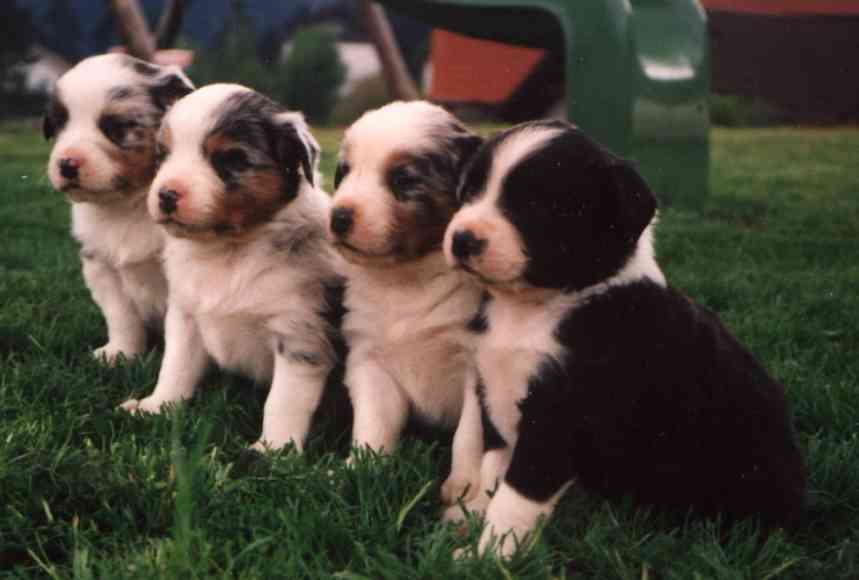 Wir sehen davon ab, einen eigenen Rüden zu halten, um bei der Anpaarung unserer Hündinnen flexibel zu sein. Unser Zuchtziel ist nicht nur ein schöner Aussie, sondern ein Aussie mit Köpfchen. Die Welpen sind in den ersten 2-3 Wochen in der Wurfkiste im Haus untergebracht. Wenn sie dann die Augen geöffnet haben, mobiler und neugieriger sind, der Platz und Bewegungsbedarf größer wird, werden sie in die Scheune umquartiert. Tagsüber kommen sie je nach Witterung in den Garten oder in einen überdachten Auslauf. Dort sind sie dann mit spielen, toben und lernen beschäftigt. Unsere Kinder und natürlich auch deren Freunde spielen viel mit den Welpen. Jeden Tag gibt es etwas Neues zu entdecken, neue Erfahrungen zu sammeln. Die Welpen werden bei uns nicht steril gehalten, sondern sie sind der Mittelpunkt und werden mit allem konfrontiert, was zu einem ausgefüllten Aussieleben gehört. Beispielsweise Kontakt zu fremden Personen, anderen Tieren ( Katzen, Pferde u.s.w.), Autofahren, Tierarztbesuch .......... Wir legen auch Wert darauf, soweit dies möglich ist, dass die zukünftigen Besitzer der Welpen mehrmals Kontakt mit ihrem Welpen aufnehmen können. Oftmals wird schon zu einem so frühen Zeitpunkt die Bande für`s Leben geknüpft. Wir geben unsere Welpen frühestens mit 8 Wochen entwurmt, geimpft und tierärztlich untersucht ab. |